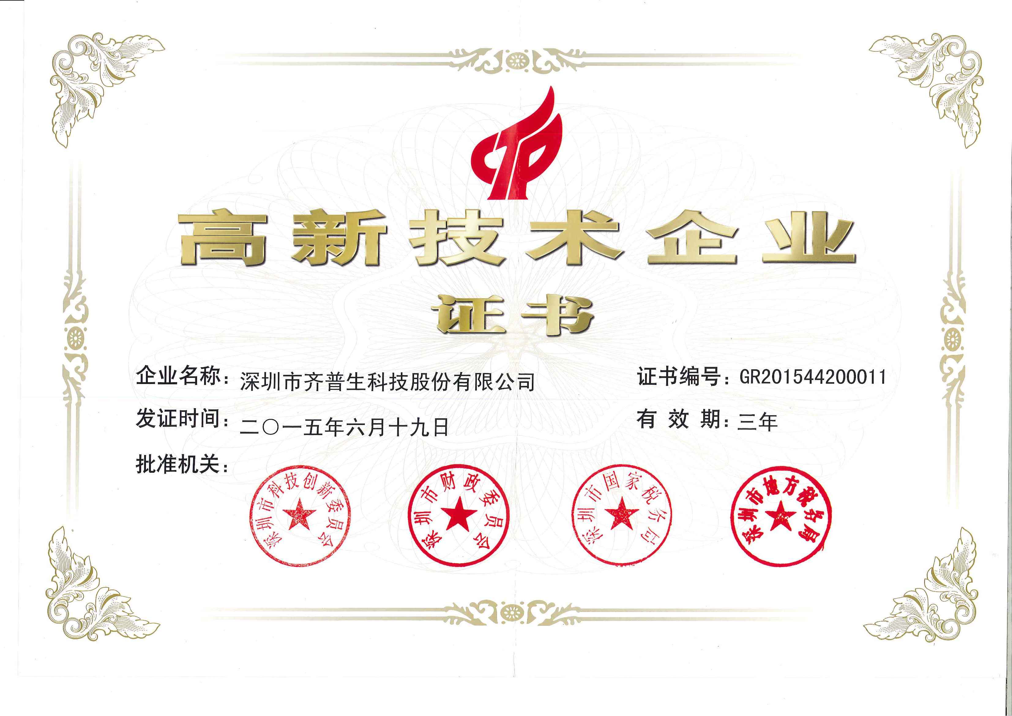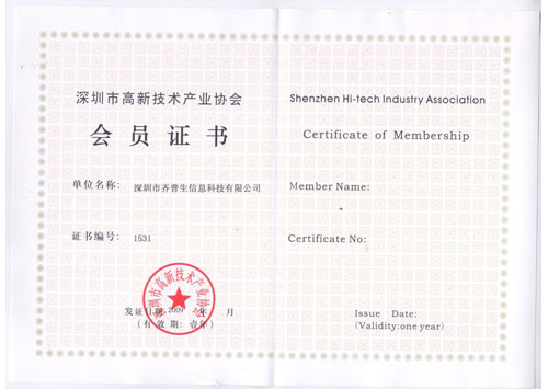 • 深圳市高新技術產業(yè)協(xié)會會員證書