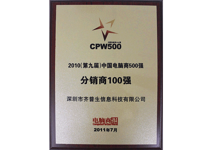 • 2010年電腦商500強分銷商100強并獲“最佳IaaS方案服務提供商”